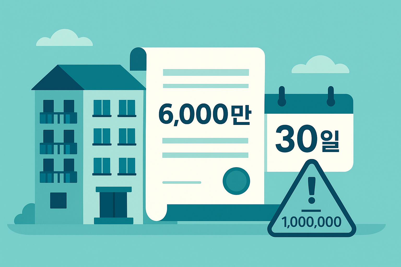 한 줄 요약 : “보증금 6,000만 원·월세 30만 원 넘는 전·월세 계약은 30일 안에 신고, 안 하면 임대인·세입자 모두 과태료 100만 원!”